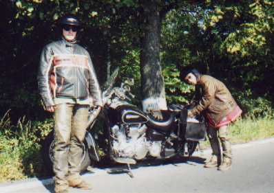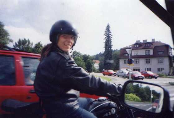 Honza po několika peripetiích je opět zpět. Svého stařičkého H-D Shovelhead ale prodal a jezdí na H-D Buell, nemám ale novou fotku.(Vlevo od Honzy má dcera - cesta na přátelskou návštěvu Bikers Baru - Joe Bar Teamu, podzim 1998).