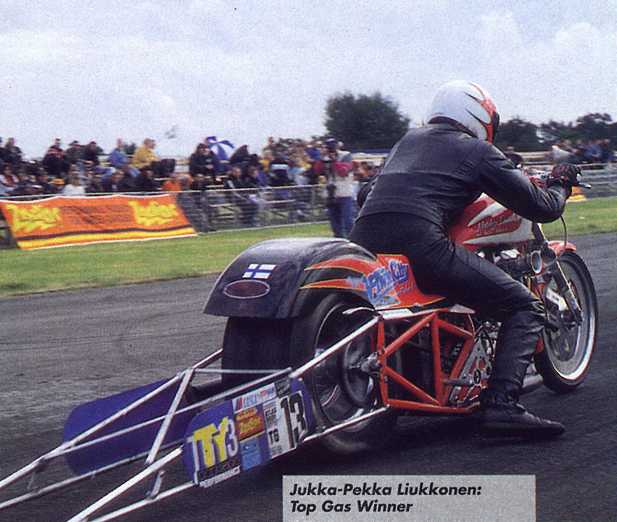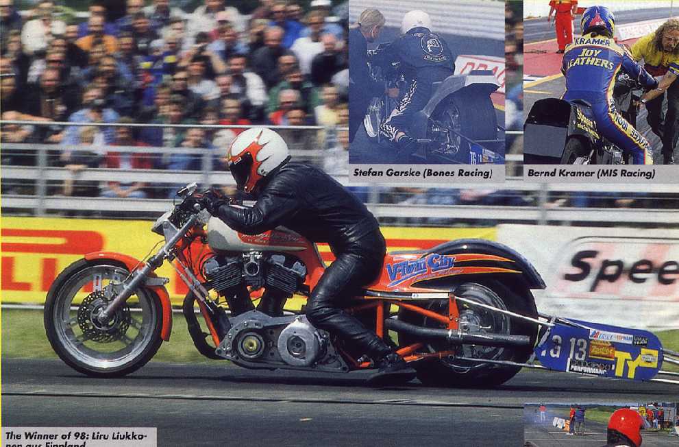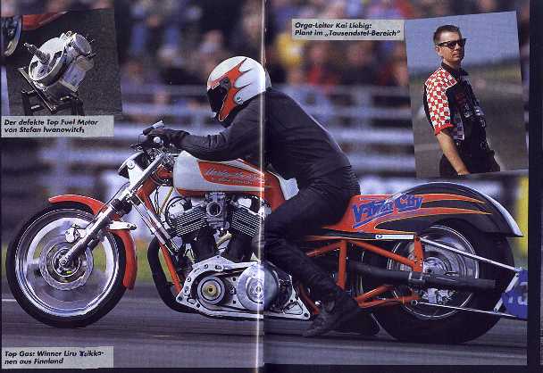 Tým: V-TWIN CITY, jezdec: J.P. Liru Liukkonen, jméno motocyklu: V-Twin City Pro Stock Harley.